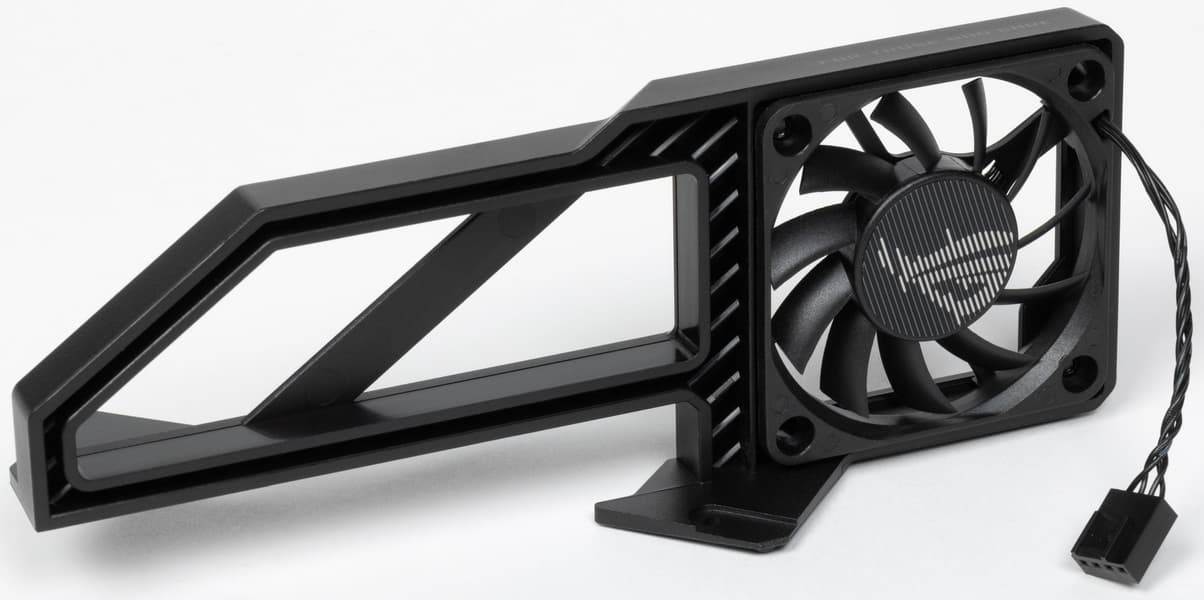 В коробке можно найти вот такого рода деталь. Это подставка вместе с дополнительным вентилятором для охлаждения модулей памяти.