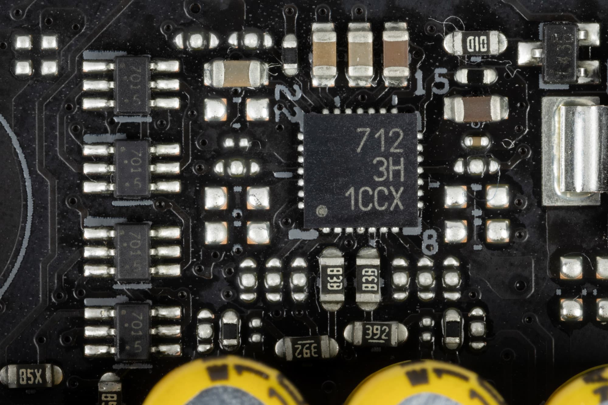 В аудиоцепях платы применяются «аудиофильские» конденсаторы Nichicon Fine Gold.