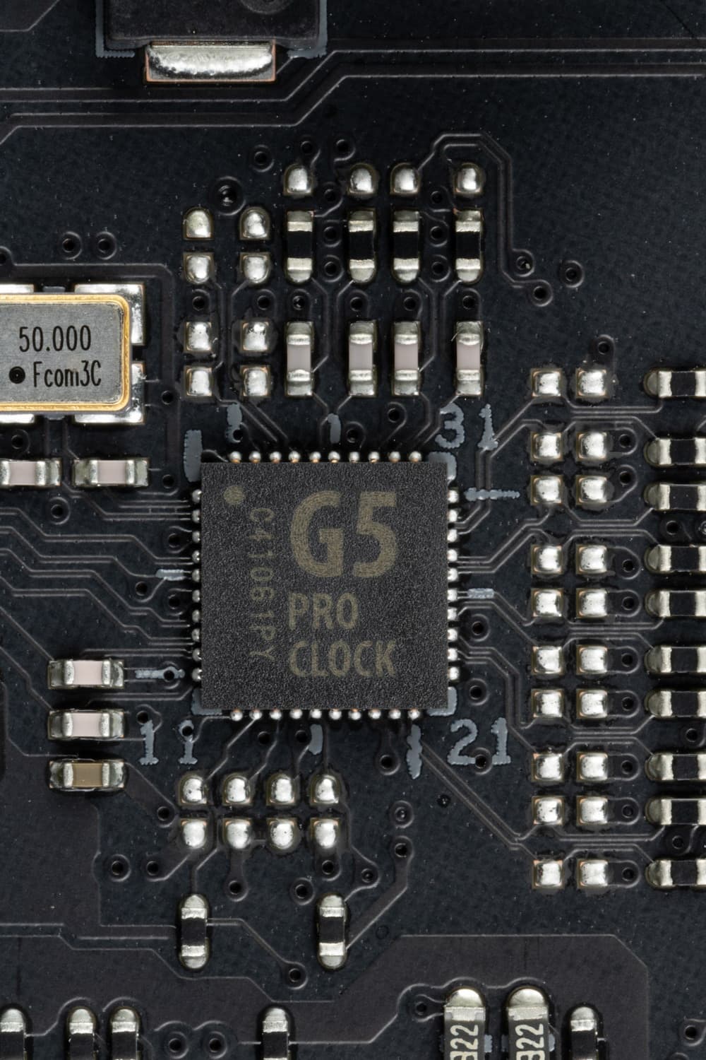 Для поддержания стабильных частот на шине PCIe (и для нужд оверклокеров) имеется внешний тактовый генератор.