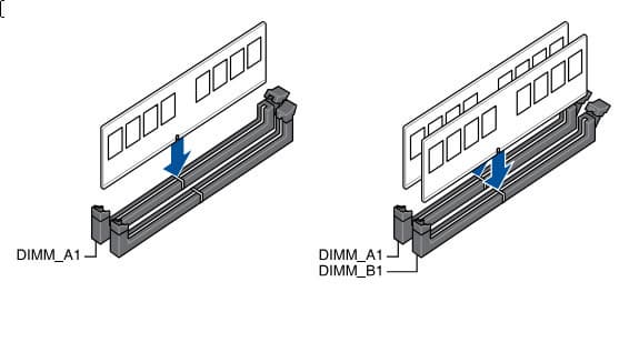 Для установки модулей памяти на плате Asus имеется два DIMM-слота (в случае использования всего 1 модуля его следует устанавливать в А1).