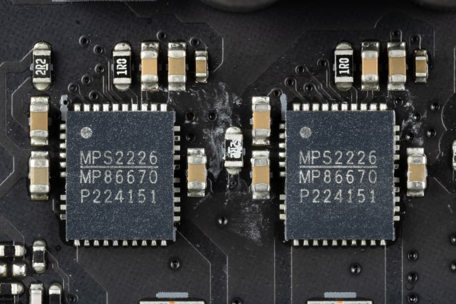 Каждый канал фазы VCore имеет суперферритовый дроссель и RAA22010540 MOSFET от Renesas на 105 А.