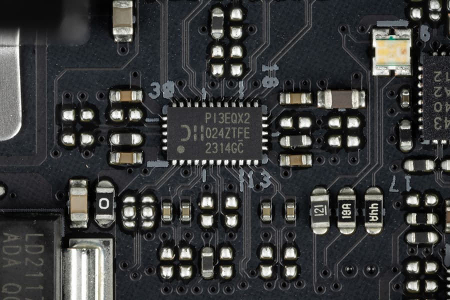Для нужд SATA имеются усилители (ре-драйверы) сигнала PCIe 3.0 от Genesys Logic.