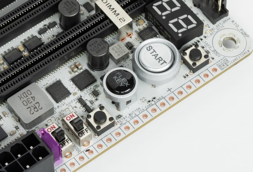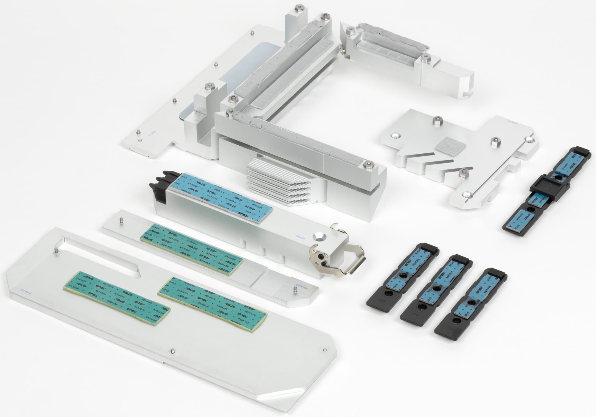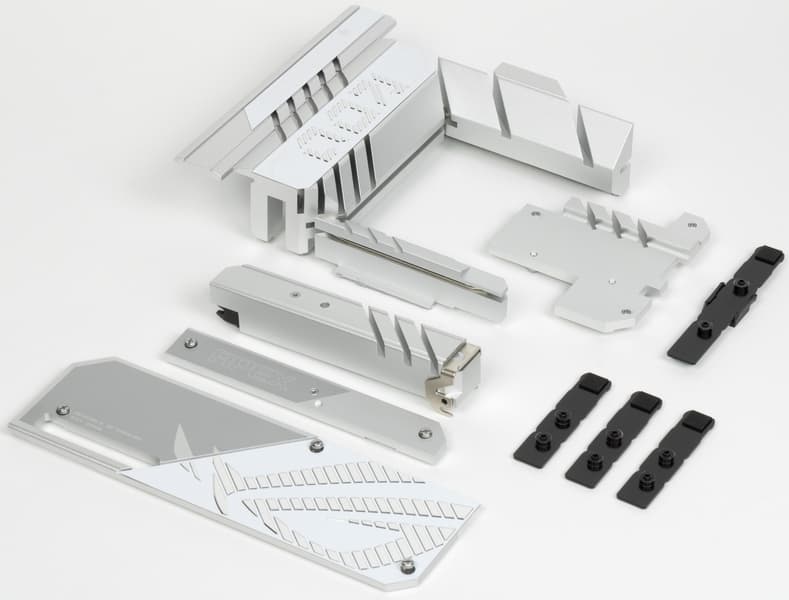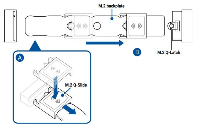 Надо особо отметить новый способ крепления накопителей в M.2 слотах с помощью технологий Q Latch и Q Slide – когда модуль запирается движущейся вдоль слота пластиной.
