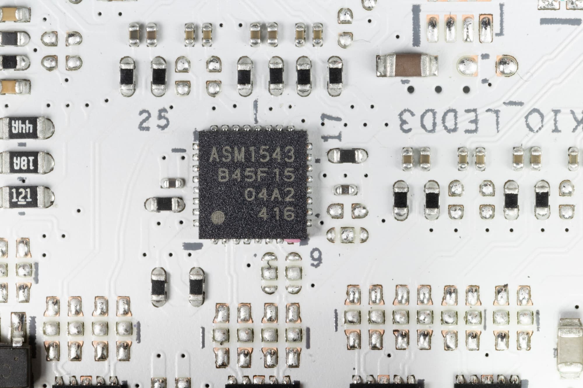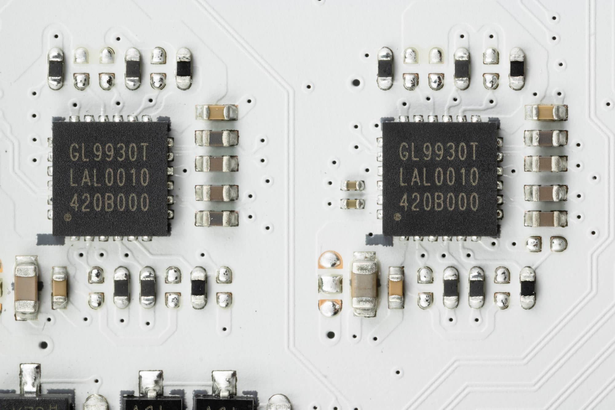 Для более стабильной работы на матплате имеются усилители (ре-драйверы) сигнала PCIe 4.0 от Genesys Logic. Подобные усилители от того же производителя и размещены на линиях SATA.