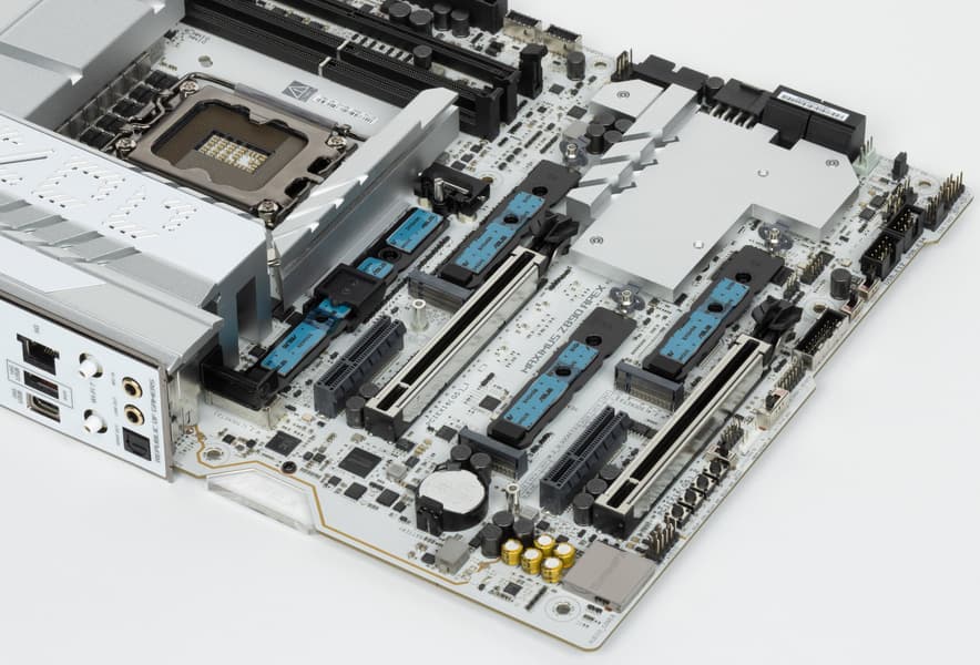 Выше я вел речь про первые PCIe x16_1/2, подключенные к процессору. Оставшиеся два PCIe x4 подключены к Z890, и работают в режиме x4.