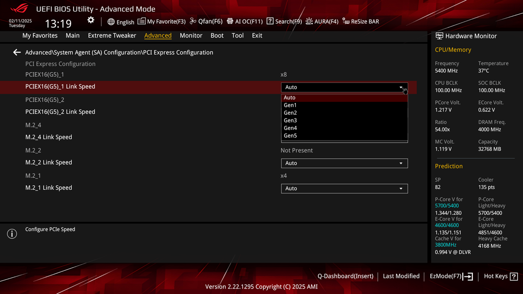 Еще раз отмечу, что материнская плата имеет возможность обеспечить слоты M.2_3/4 версией PCIe 5.0, но в случае занятости этими слотами модулями SSD слот PCIe x16_1 получит всего 8 линий PCIe 5.0, а PCIe x16_2 получит 4 линии, или вовсе будет отключен.