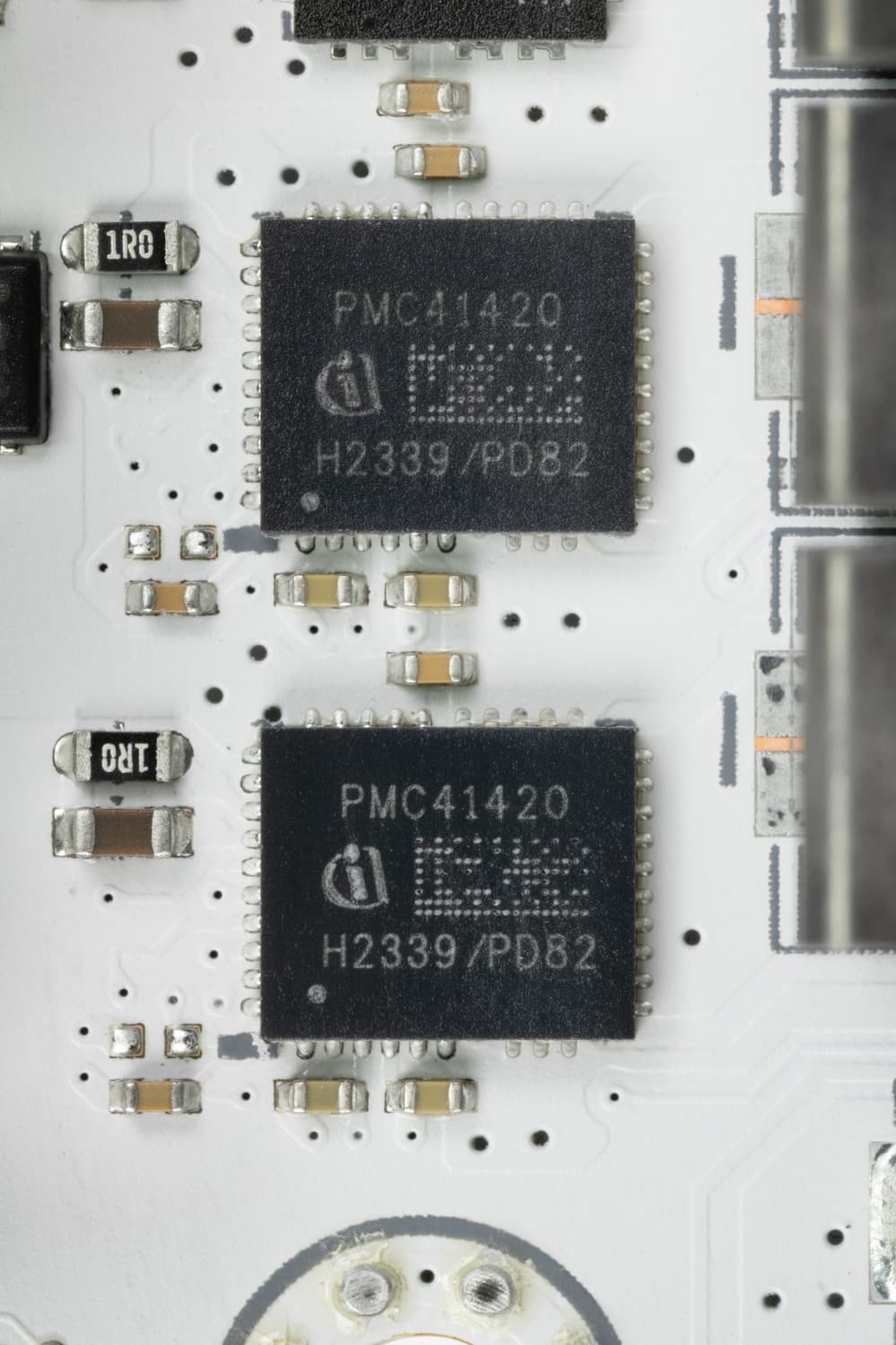 Каждый канал фазы питания VNNAON кроме дросселя имеет PMC41420 DrMOS от Infineon на 80 А.