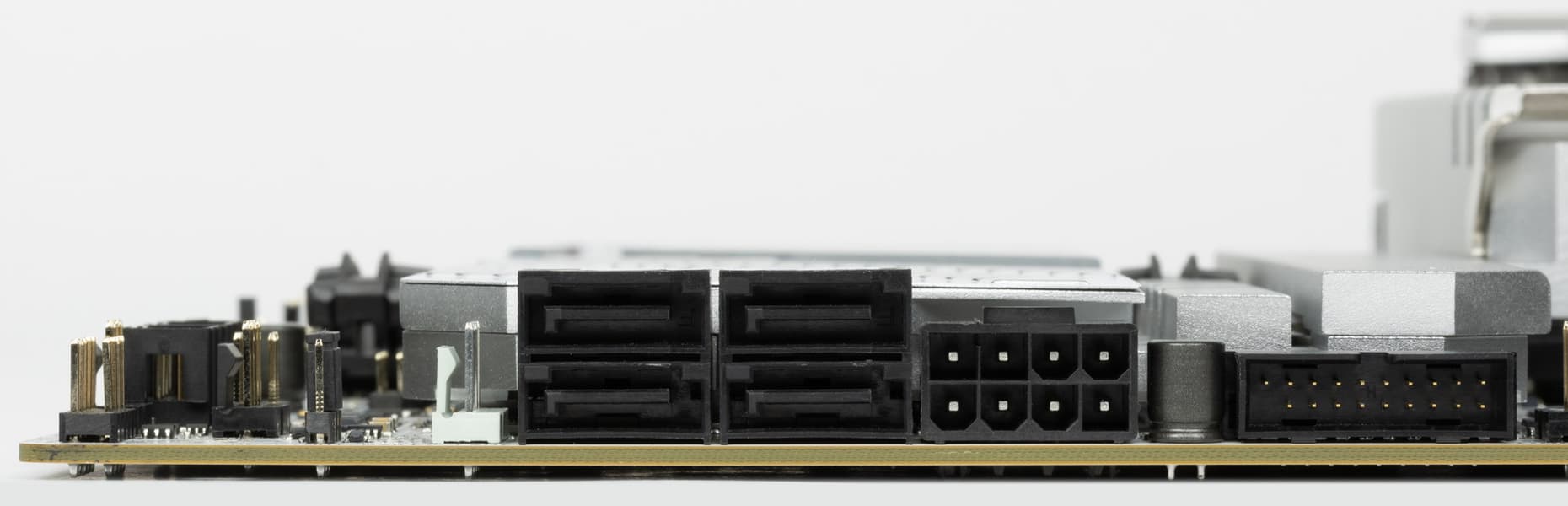 Всего у платы 4 разъема Serial ATA 6 Гбит/с + 6 слотов для накопителей в форм-факторе M.2. 4 порта SATA 1,2,3,4 реализованы через чипсет Z890.