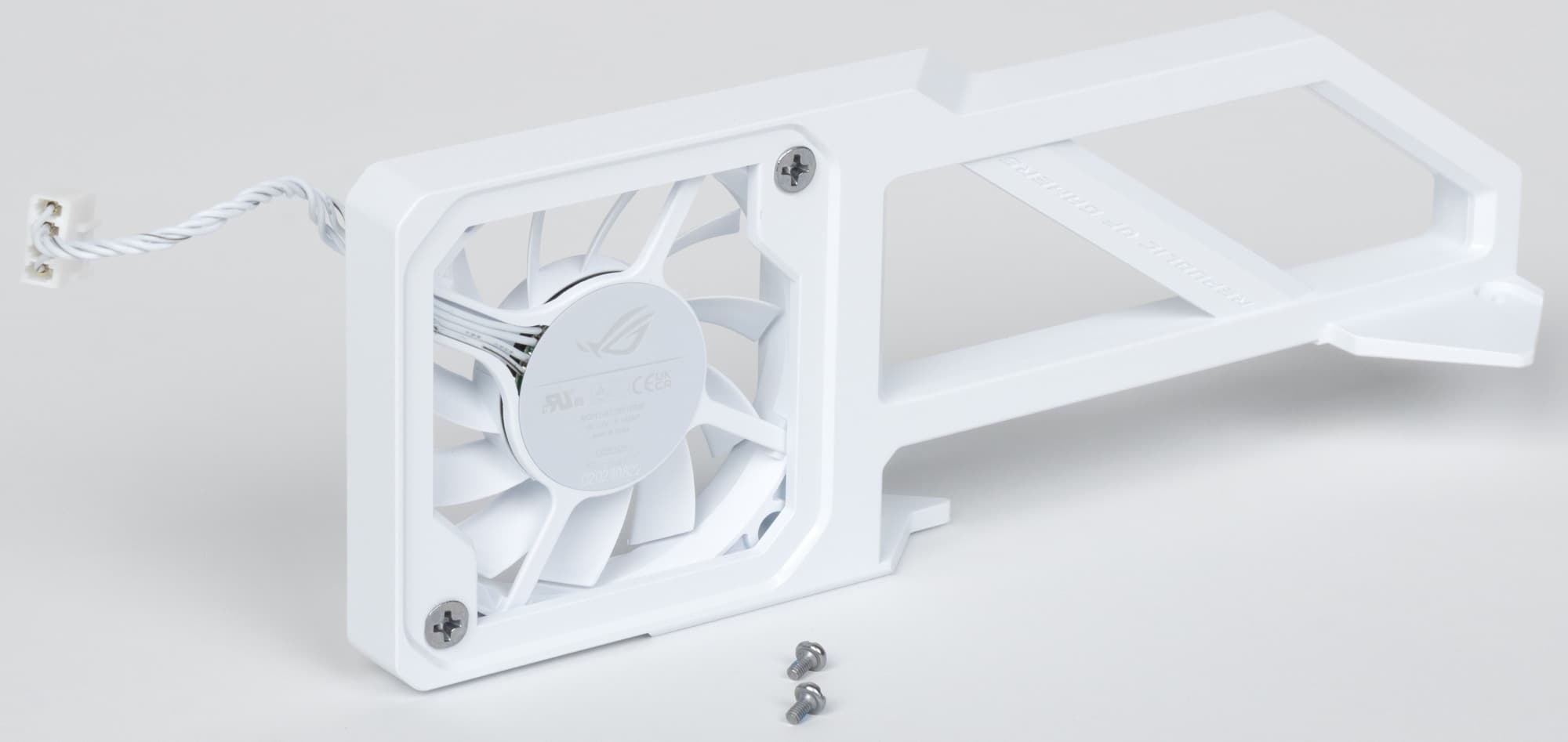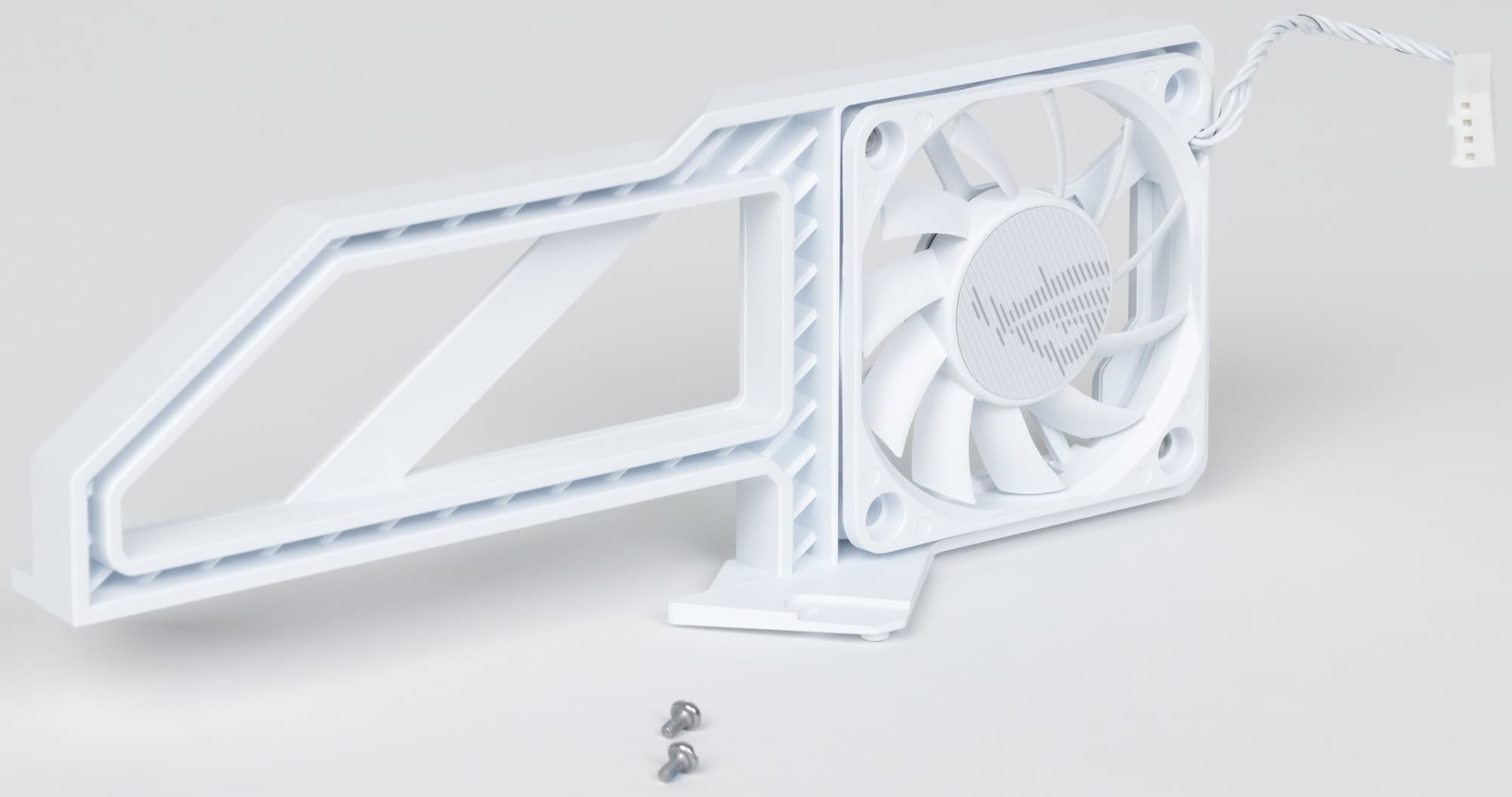 Одной из особенностей новой платформы Intel является поддержка современной памяти DDR5 в в виде CUDIMM. Цель этих новаций – достижение более высоких тактовых частот работы, а значит и нагрев модулей памяти может вырасти. Поэтому в комплекте поставки матплаты имеется дополнительный кронштейн с уже установленным на нем вентилятором 40 мм.