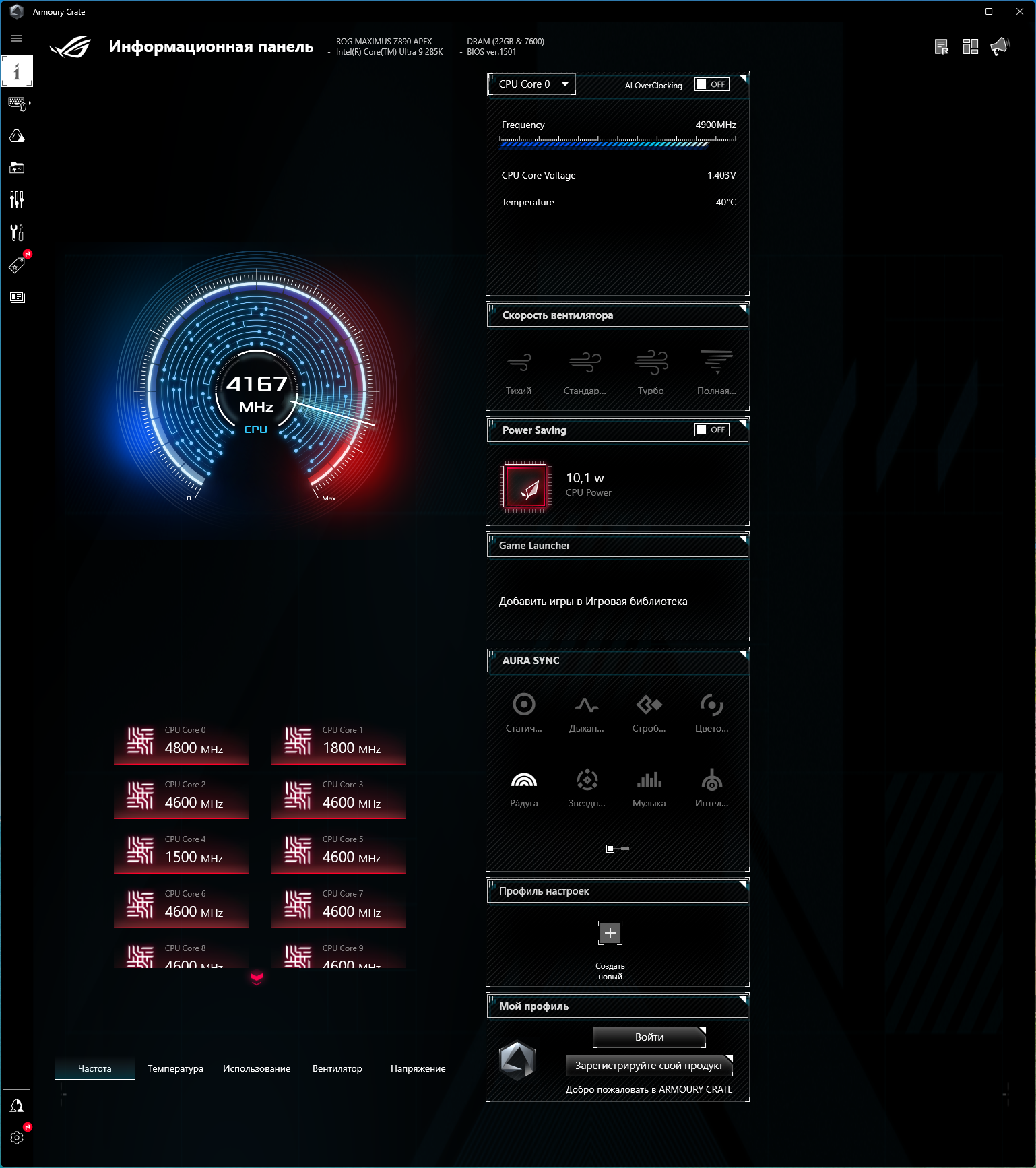 Для энтузиастов и любителей всего самого производительного у платы имеется огромный арсенал настроек в BIOS Setup и возможность использовать фирменные утилиты под Windows, в том числе с интегрированными моделями ИИ для определения самого производительного режима работы ПК.
