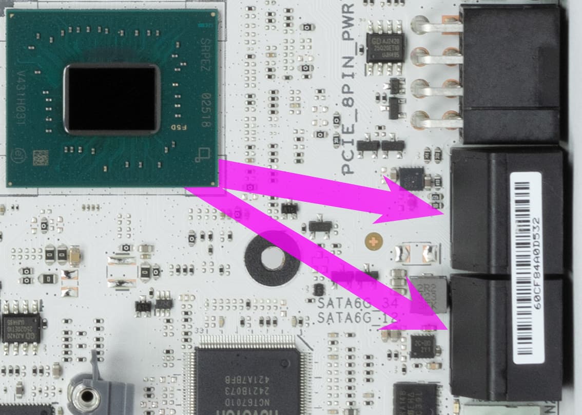 21 линия PCIe оказалась занята, плюс 4 порта SATA. Связь с аудиокодеками через HDA (эмуляцию шины PCI) теперь невозможна, так что в данном случае линия USB 2.0 расходуется на связь с Realtek RTL4080, плюс один USB 2.0 расходуется на поддержку BT, а также контроллер Aura и т.д. для своих нужд используют сигнальные линии USB 2.0 и 3.2 Gen1. Детально об этом ниже в разделе USB-портов.