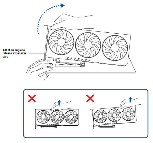 Для удобного извлечения видеокарт из слота PCIe x16_1 имеется особый механизм Q-Release Slim: надо потянуть видеокарту в районе крепежной планки вверх. Тогда сработает замок.
