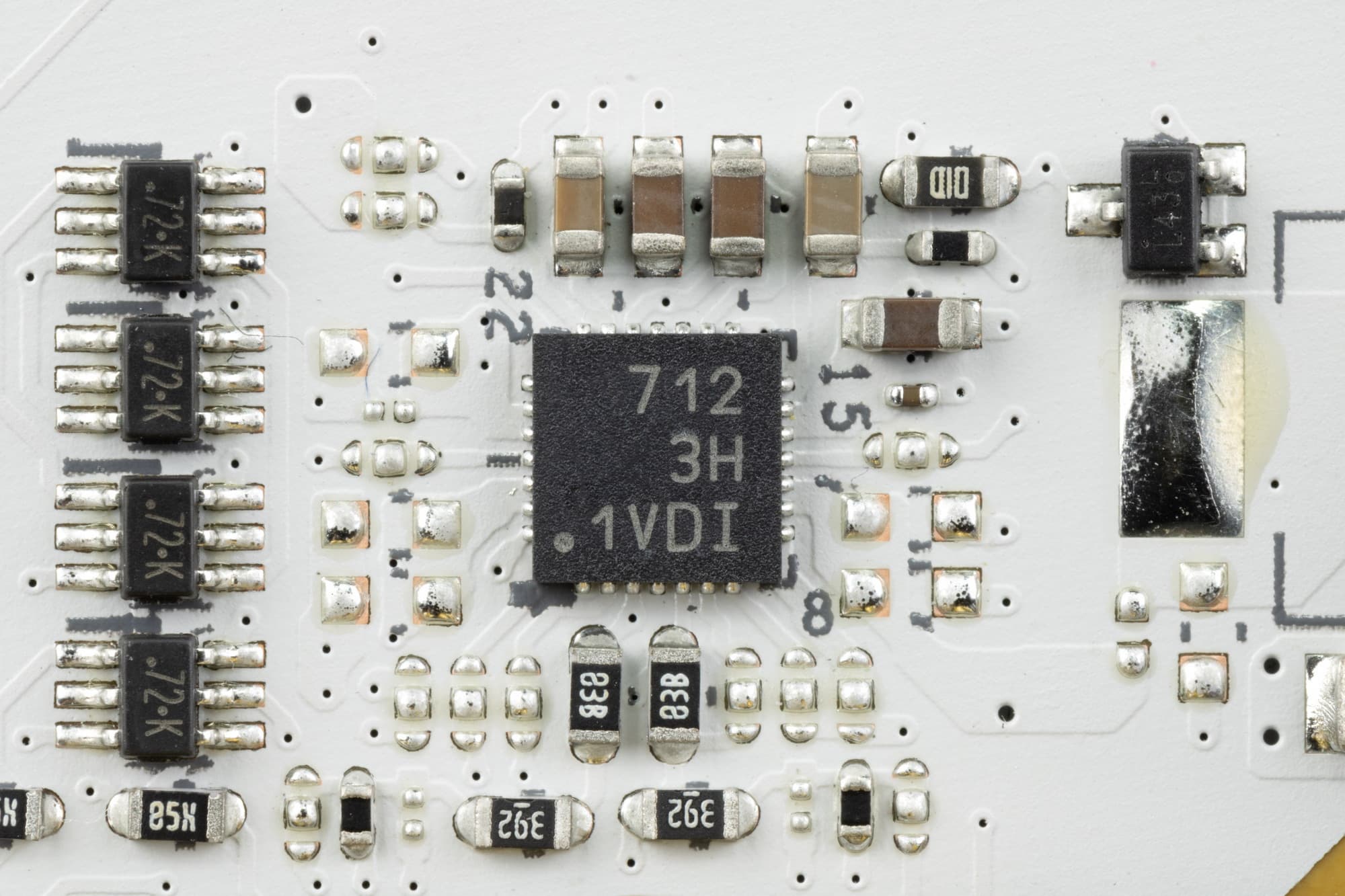 На оборотной стороне расположены традиционные некоторые электронные логические элементы, а также ряд контроллеров. Текстолит обработан неплохо: во всех точках пайки срезаны острые концы. Защитная пластина (бэкплейт) отсутствует.