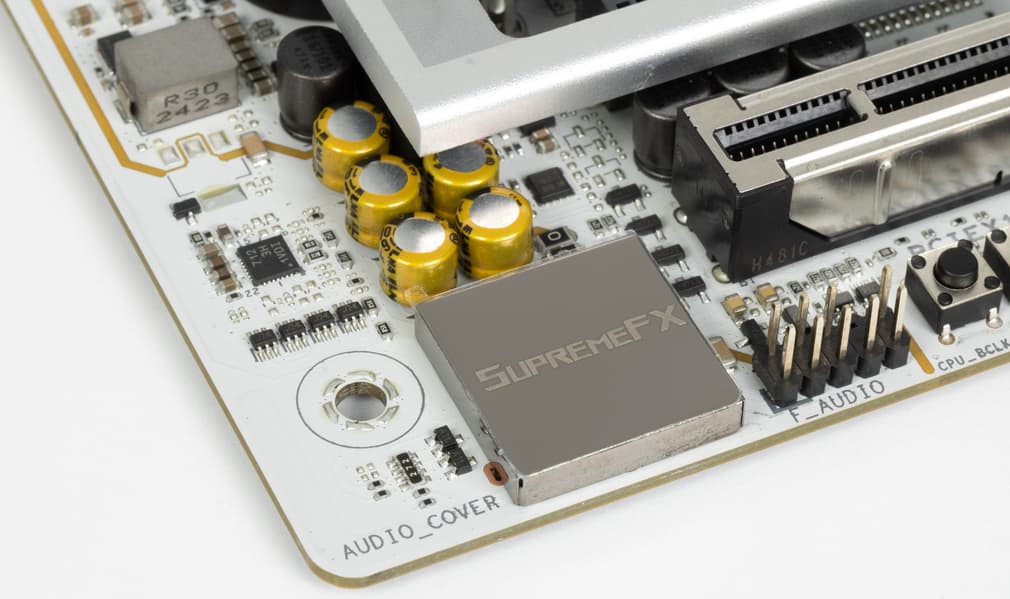 Аудиотракт вынесен на угловую часть платы, не пересекается с другими элементами. У карты два универсальных разъема с позолоченным покрытием по приему и выводу сигналов плюс оптический S/PDIF.