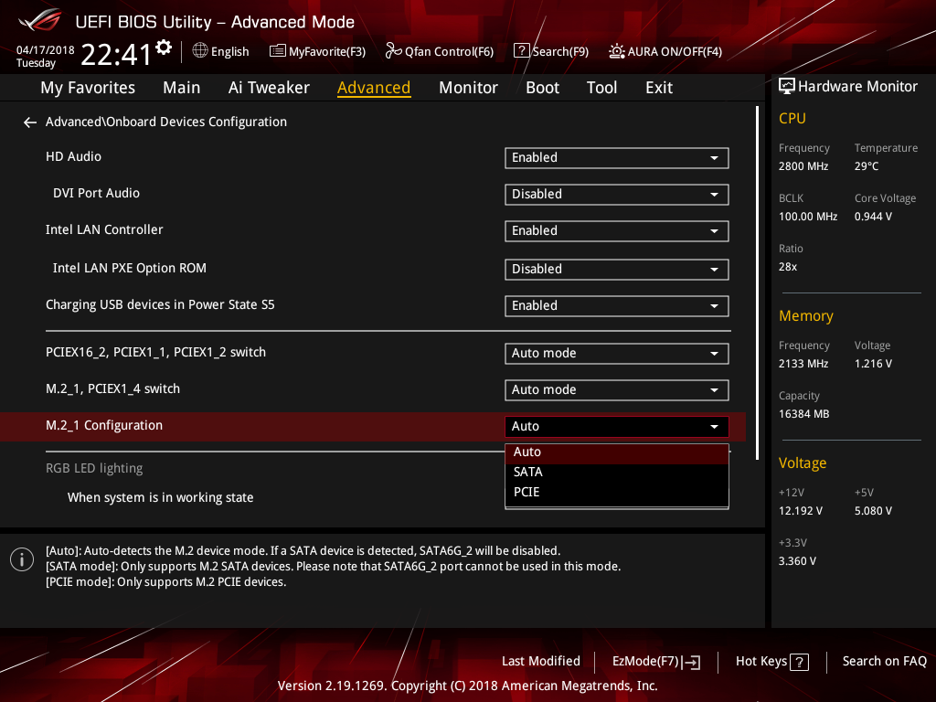 Отметим также, что в UEFI BIOS появилась опция управления подсветкой Aura On/Off по быстрой клавише F4. Но конкретно на данной плате эта опция не работала.