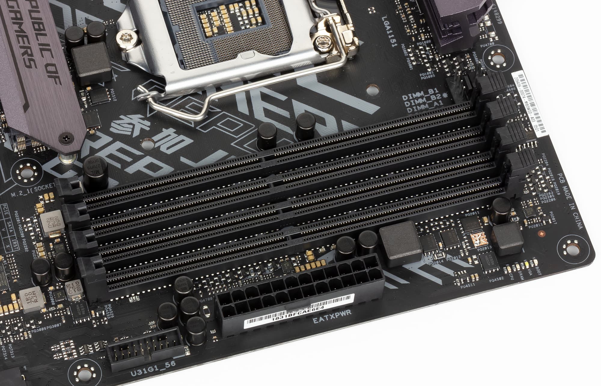 Для установки модулей памяти на плате Asus ROG Strix B360-F Gaming предусмотрено четыре DIMM-слота. Плата поддерживает небуферизованную память DDR4-2666 (non-EСС), а максимальный объем памяти составляет 64 ГБ (при использовании модулей емкостью по 16 ГБ).