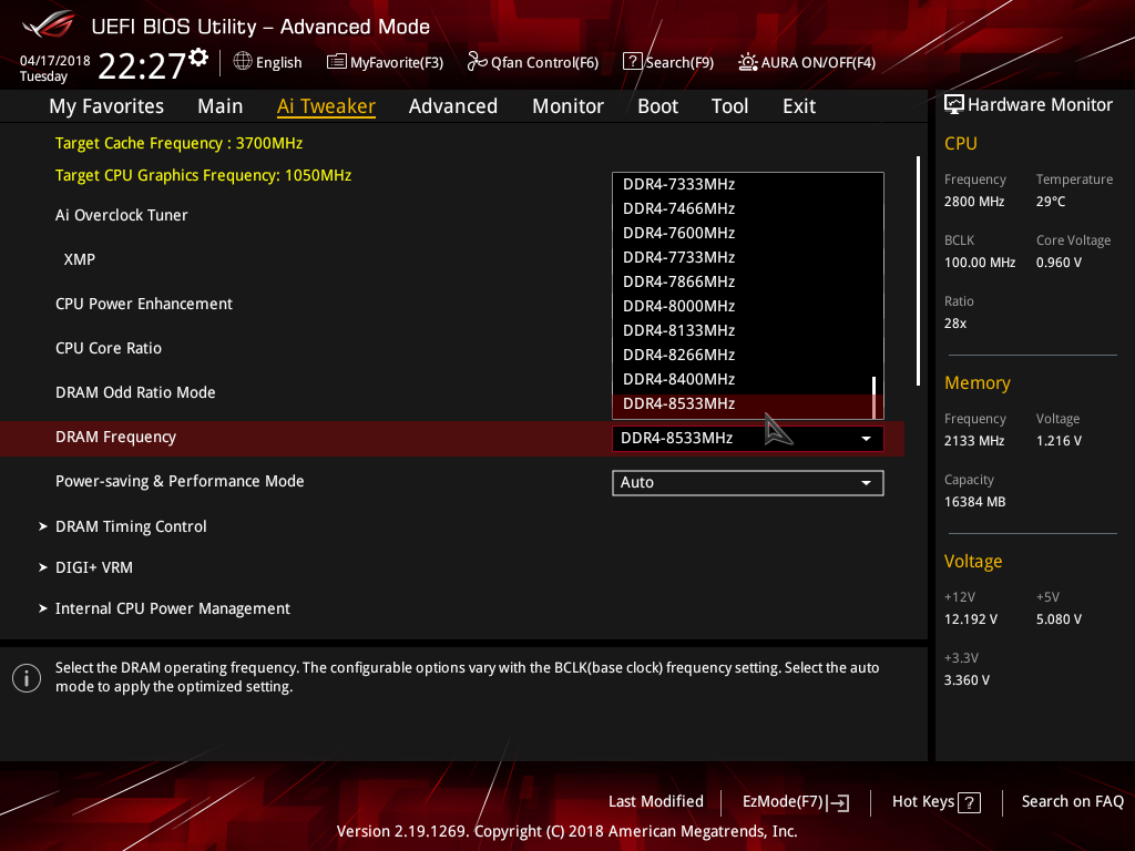 Напомним, что чипсет Intel B360 не позволяет разгонять процессор и память, однако, уже традиционно, в UEFI BIOS на платах Asus есть кажущаяся возможность разгона памяти. Но реально максимальная частота памяти, которая поддерживается, составляет 2666 МГц.