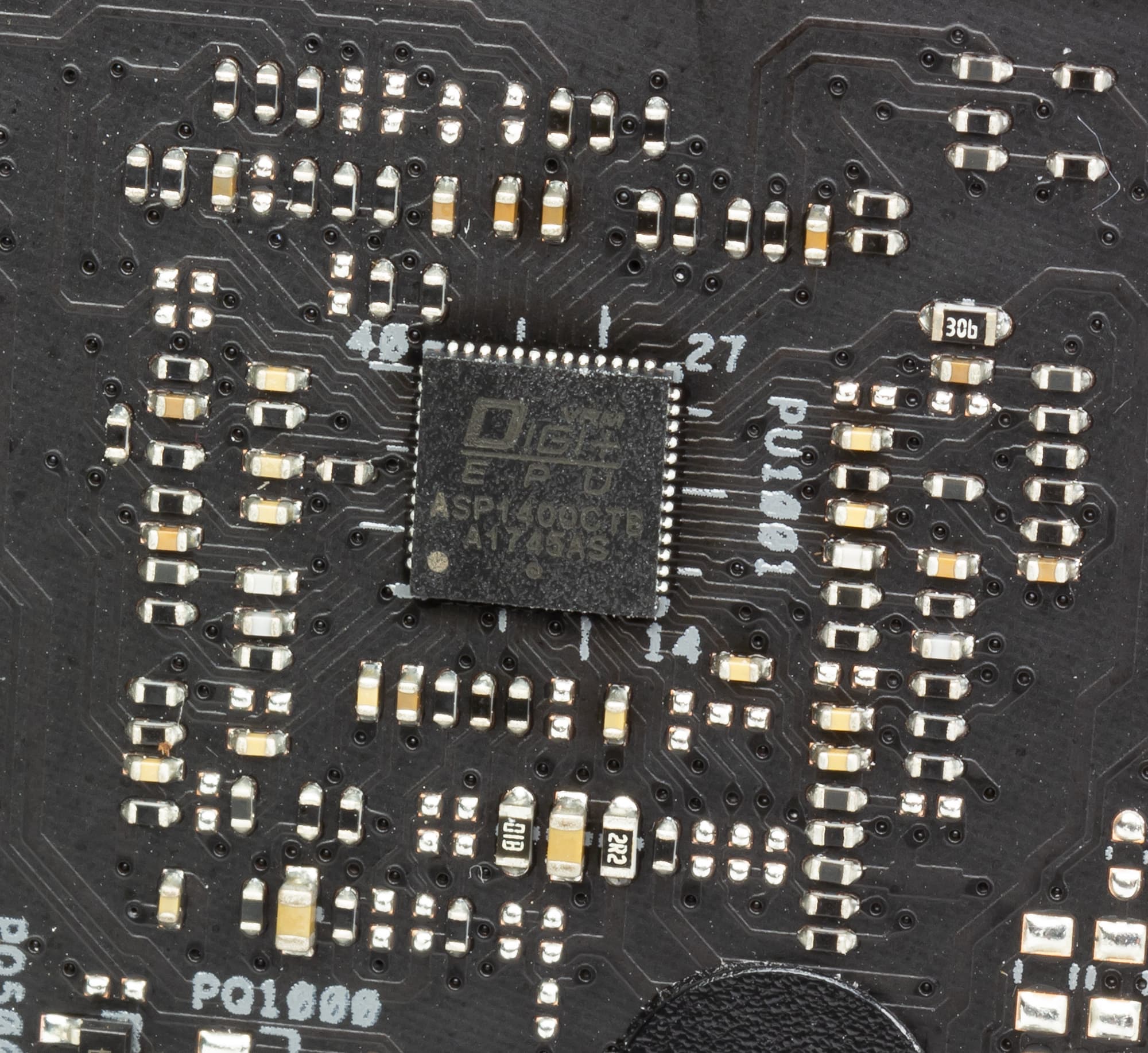 Управляется регулятор напряжения питания PWM-контроллером с маркировкой ASP1400CTB. В каждом канале питания используется пара MOSFET-транзисторов 4C06N и 4C10B компании On Semiconductor.