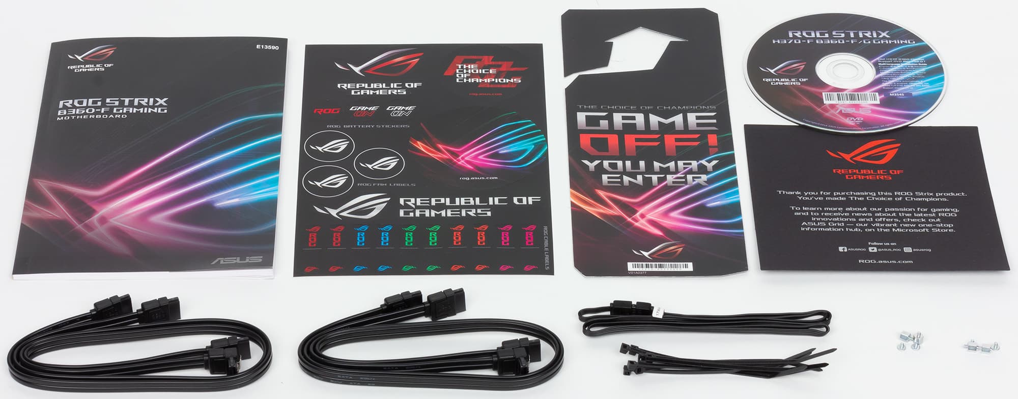 Комплект поставки минимален и включает в себя руководство пользователя, четыре SATA-кабеля (все разъемы с защелками, два кабеля имеют угловой разъем с одной стороны), DVD-диск с драйверами, а также стикеры для кабелей и корпуса и даже пластиковые стяжки для монтажа платы.
