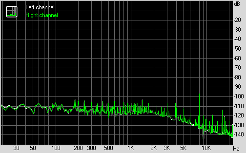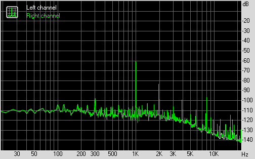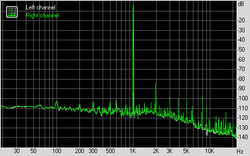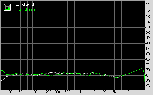 Для тестирования выходного звукового тракта, предназначенного для подключения наушников или внешней акустики, мы использовали внешнюю звуковую карту Creative E-MU 0204 USB в сочетании с утилитой RightMark Audio Analyzer 6.3.0. Тестирование проводилось для режима стерео, 24-бит/44,1 кГц. По результатам тестирования аудиотракт на плате получил оценку «Очень хорошо».