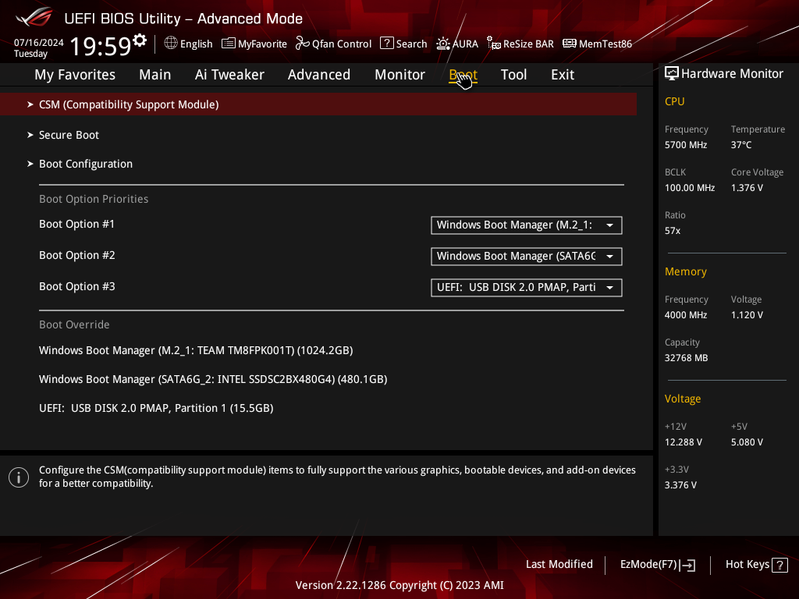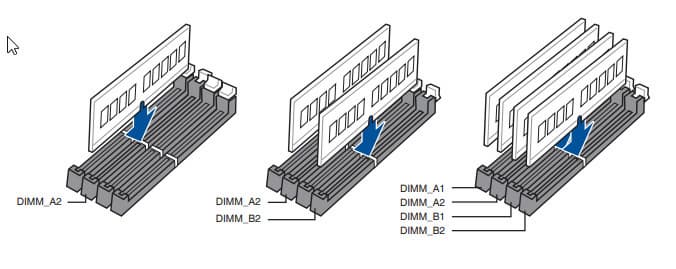 Для установки модулей памяти на плате Asus имеется 4 DIMM-слота (для работы памяти в Dual Channel в случае использования всего 2 модулей их следует устанавливать в А2 и B2). Плата поддерживает небуферизованную память DDR5 (non-EСС), а максимальный объем памяти составляет 192 ГБ. Поддерживаются профили XMP.