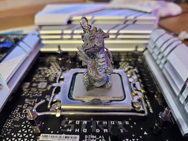 По использованному чипсету B760 ясно, что плата предназначена для процессоров среднего уровня. Однако на практике она прекрасно работает даже с топовыми процессорами Intel Core 12/13/14-го поколений. У нее 15 USB-портов, включая 2 быстрых USB 3.2 Gen2, а также один самый быстрый USB 3.2 Gen2×2 в виде порта Type-C на задней панели (пригоден для быстрой зарядки мобильных устройств благодаря повышенной мощности), плюс 5 портов USB 3.2 Gen1. У платы есть два «длинных» слота: один PCIe х16, получающий от процессора 16 линий PCIe, причем версии 5.0, и один PCIe x4, делящий ресурсы с двумя «маленькими» PCIe x1. Также у платы 3 слота M.2: один из них подключен напрямую к процессору линиями PCIe 4.0, два других подключены к чипсету B760 линиями PCIe 4.0. Еще у этой модели 4 порта SATA и 7 разъемов для вентиляторов. Сетевые возможности включают быстрый проводной контроллер 2,5 Гбит/с, а также беспроводной Wi-Fi 6 + Bluetooth 5.3. В числе плюсов платы можно упомянуть возможности для подключения дополнительных ARGB/RGB-устройств подсветки.