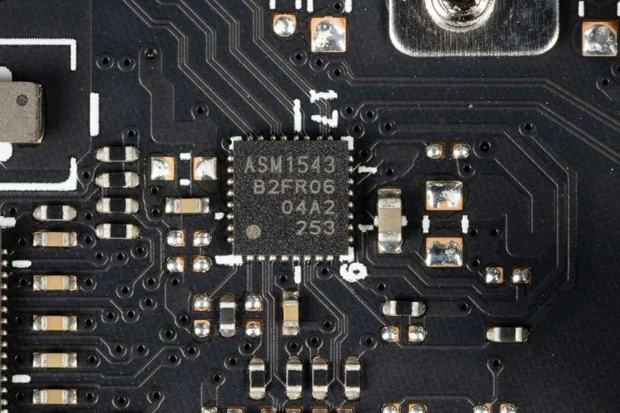 - 5 портов USB 3.2 Gen1: 4 реализованы через хаб ASMedia ASM1074 (на него потрачена линия USB 3.2 Gen2 от B760) и представлены на задней панели 2 портами Type-A (синего цвета) и внутренним разъемом на материнской плате на 2 порта, еще один1 реализован через B760 и представлен портом Type-C на задней панели;