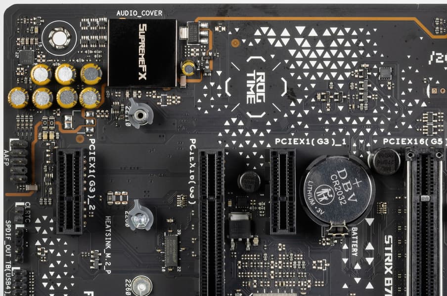 14 линий PCIe оказались занятыми (10 PCIe 4.0 + 4 PCIe 3.0) плюс порты SATA_1/2/3/4, суммарно потрачено 18 HSIO. В чипсете B760 связь с аудиокодеками новее RTS1220 идет через USB-порт. Также один USB 2.0 расходуется на поддержку BT (при наличии слота M.2 (key E), контроллер Aura расходует 1 линию USB 2.0,а хабы ASMedia ASM1074 и Realtek RTS5463 используют линии USB 3.2 Gen2 (детально в разделе ниже).