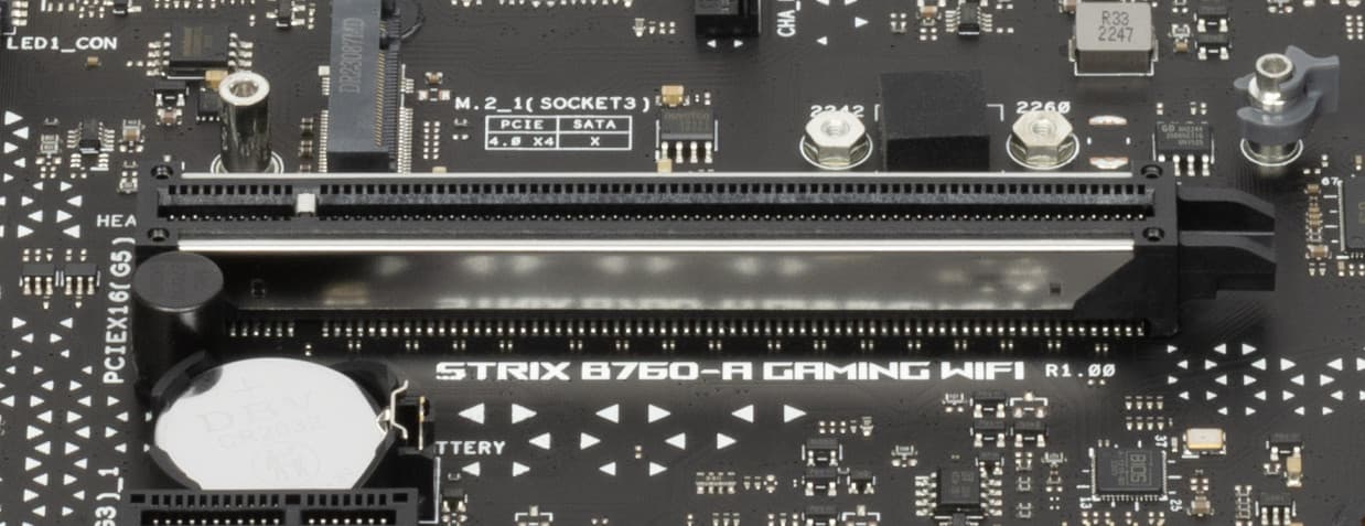 Теперь в целом про слоты PCIe. Всего на плате есть 4 слота: два PCIe x16 (для видеокарт или других устройств) и два PCIe x1. Если про первый PCIe x16_1 я выше уже рассказал (он подключен к CPU), то PCIe x16_2, PCIe x1_2, PCIe x1_2 подключены к B760.
