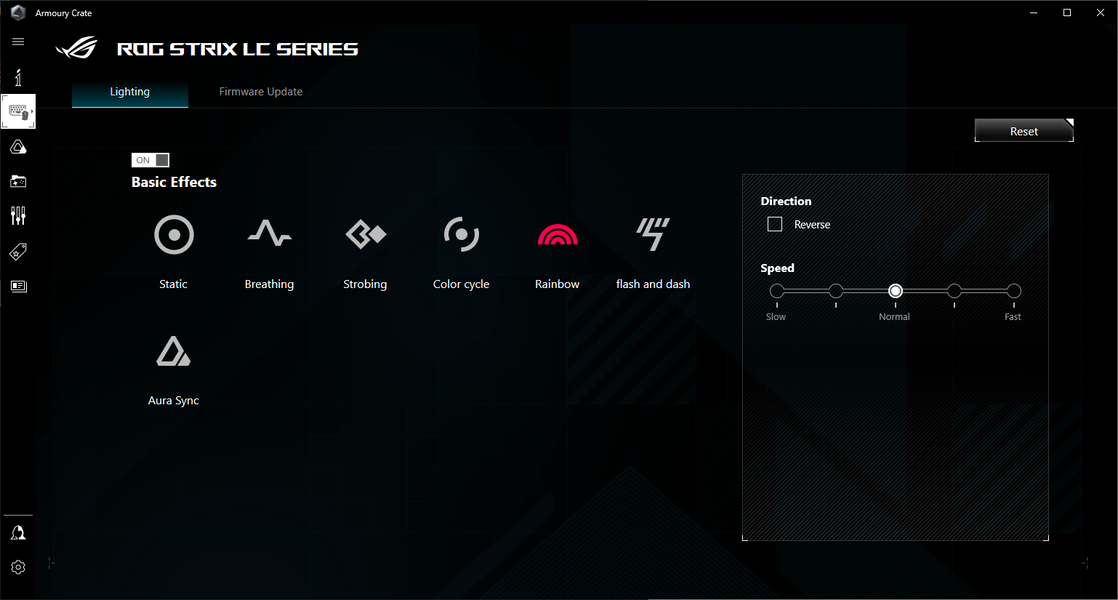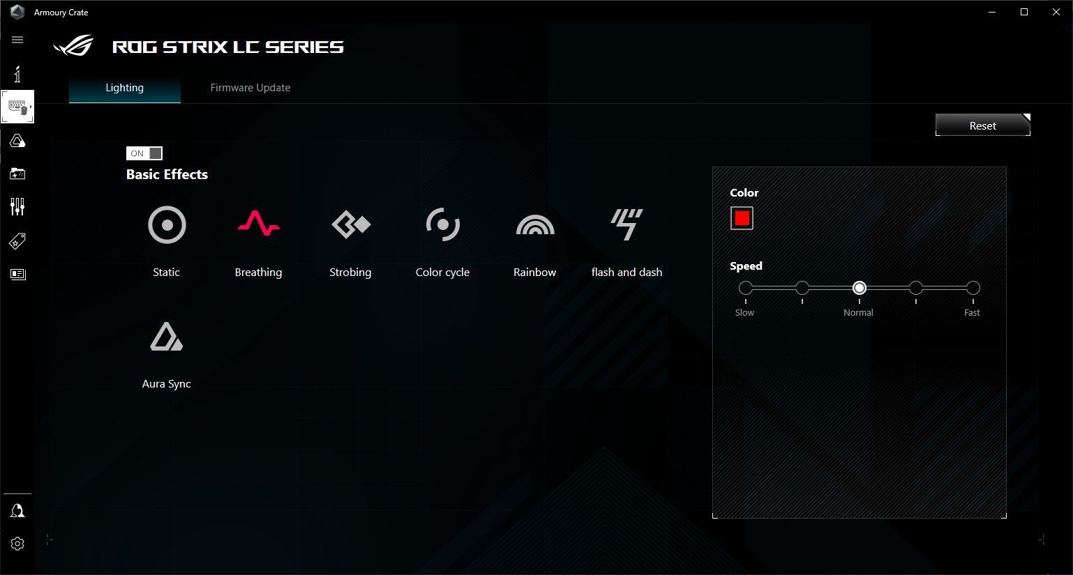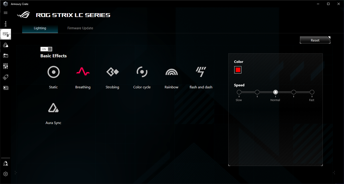 Несколько других вариантов подсветки помпы можно выбрать на вкладке окна ПО Armoury Crate: