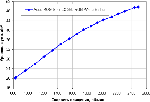 На основе системы жидкостного охлаждения Asus ROG Strix LC 360 RGB White Edition можно создать условно бесшумный компьютер (уровень шума 25 дБА и ниже), оснащенный процессором типа Intel Core i9-7980XE (Intel LGA2066, Skylake-X (HCC)), если потребление процессора под максимальной нагрузкой не будет превышать 215 Вт, а температура внутри корпуса не поднимется выше 44 °C. При снижении температуры охлаждающего воздуха и/или менее жестких требованиях к уровню шума пределы мощности можно увеличить. Любители моддинга оценят многоцветную и многозонную статическую или динамическую подсветку вентиляторов и помпы. Подсветкой помпы можно управлять с помощью программы Armoury Crate.