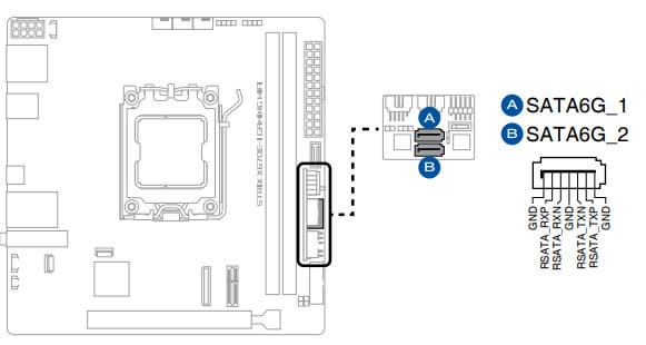 2 порта SATA 1,2 реализованы через чипсет X670E и поддерживают создание RAID.