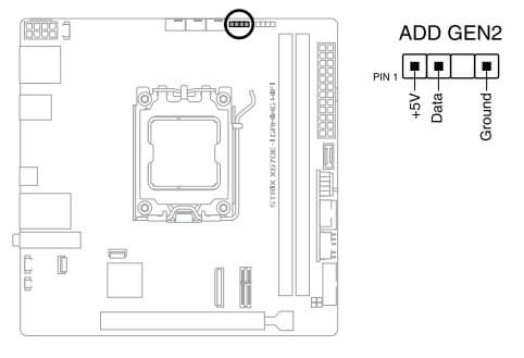 Для подключения этого блока используется комплектный кабель Type-A – Type-C, порты для сопряжения показаны ниже как на матплате,