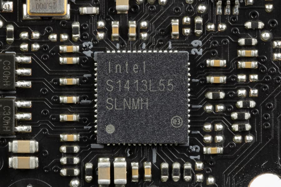 Материнская плата оснащена средствами связи хорошо. Имеется скоростной Ethernet-контроллер Intel I225-V, способный работать по стандарту 2,5 Гбит/с.
