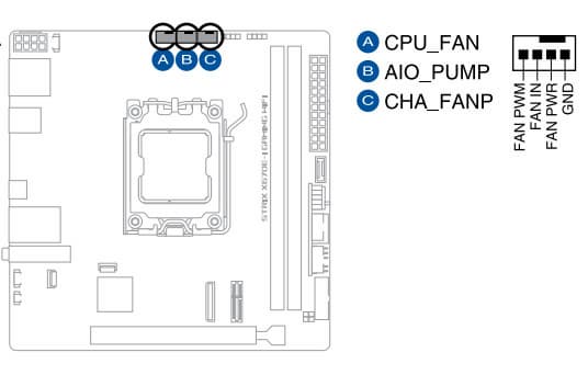 Вентиляторы включаются по сути только при старте ПК, ну и при очень высокой нагрузке на CPU (при активном авторазгоне AMD PBO).