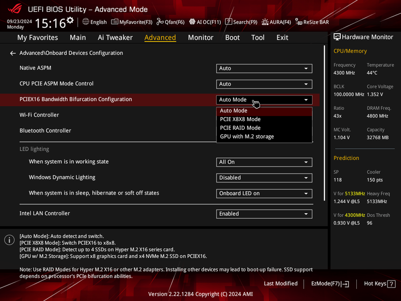Теперь посмотрим выше на то, как работают процессоры в данной конфигурации. У всех Ryzen 7xxx/8xxx/9xxx — 24 линии PCIe (плюс 4 линии на даунлинк с чипсетом). Смотрим распределение: