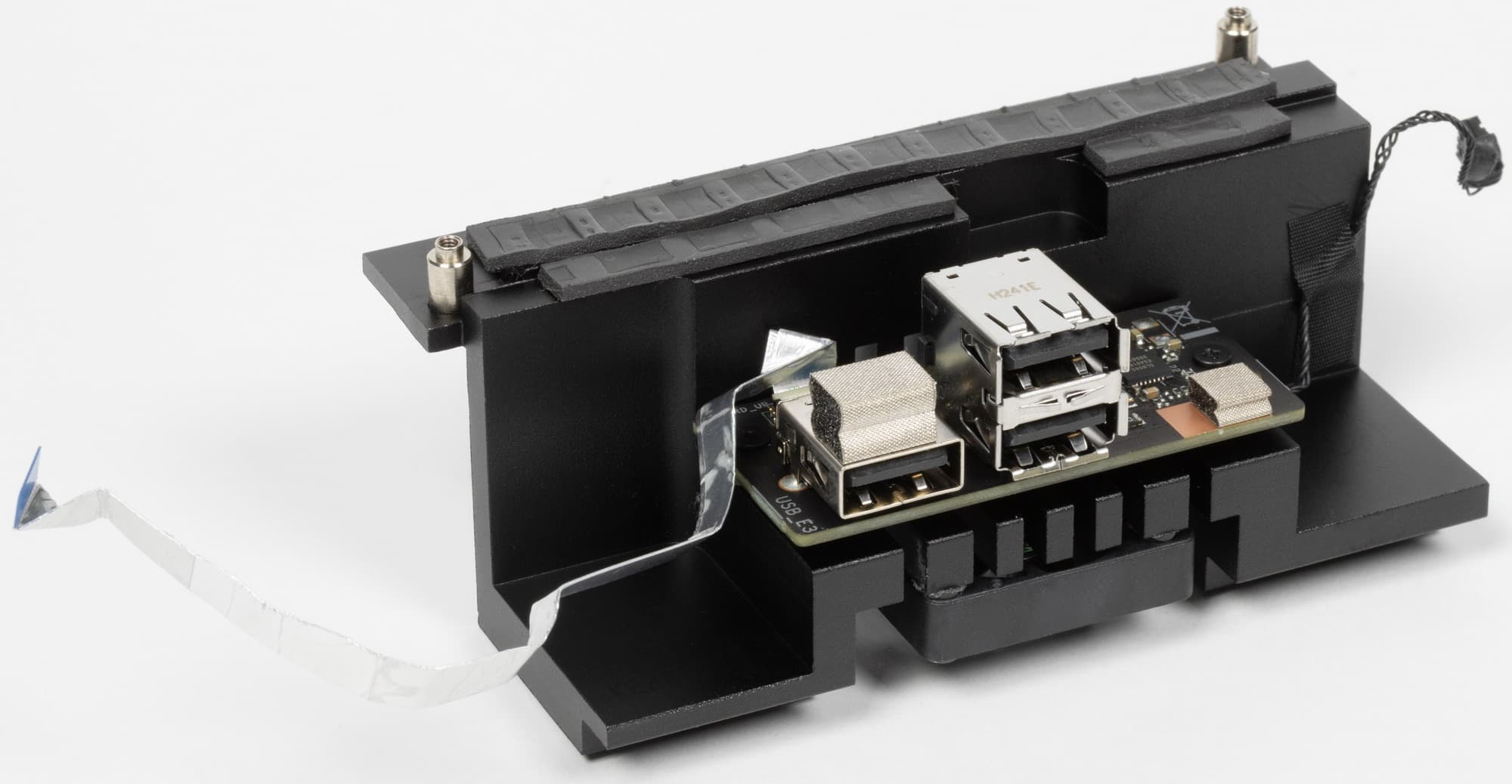 Заглушка, традиционно надеваемая на заднюю панель, в данном случае уже надета, и изнутри экранирована для снижения электромагнитных помех.