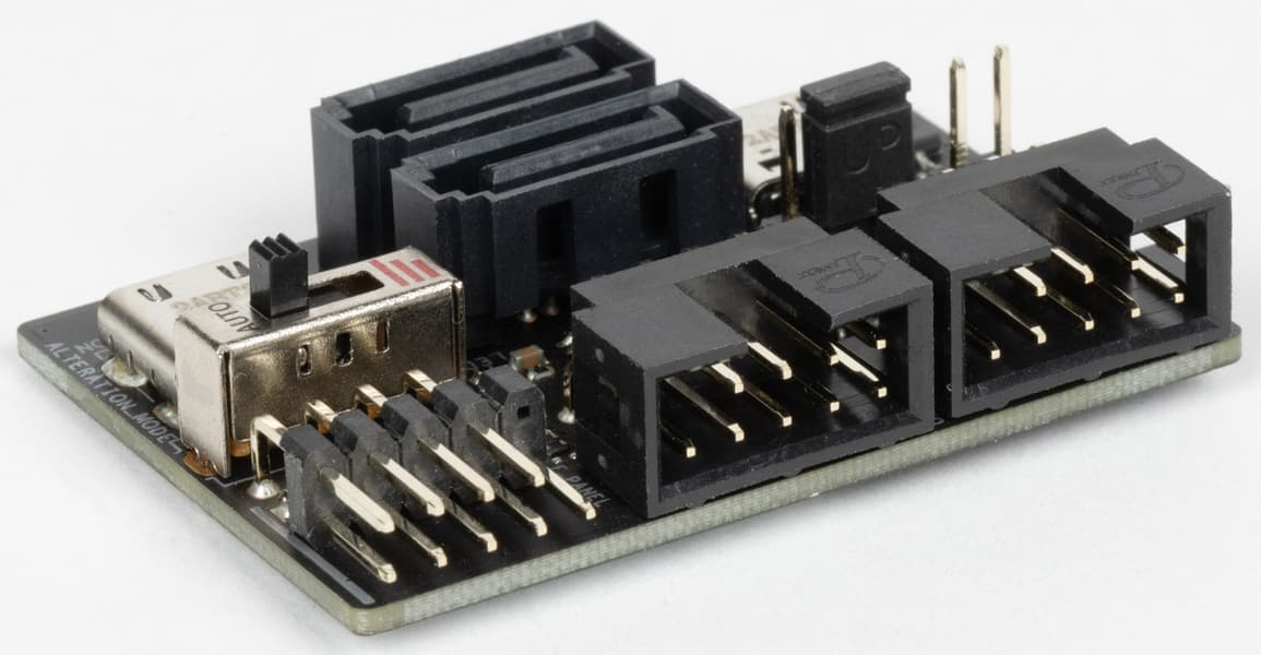 Подключается FPS-II к материнке через два вертикально ориентированных разъема Type-C (их нельзя использовать как USB-порты).