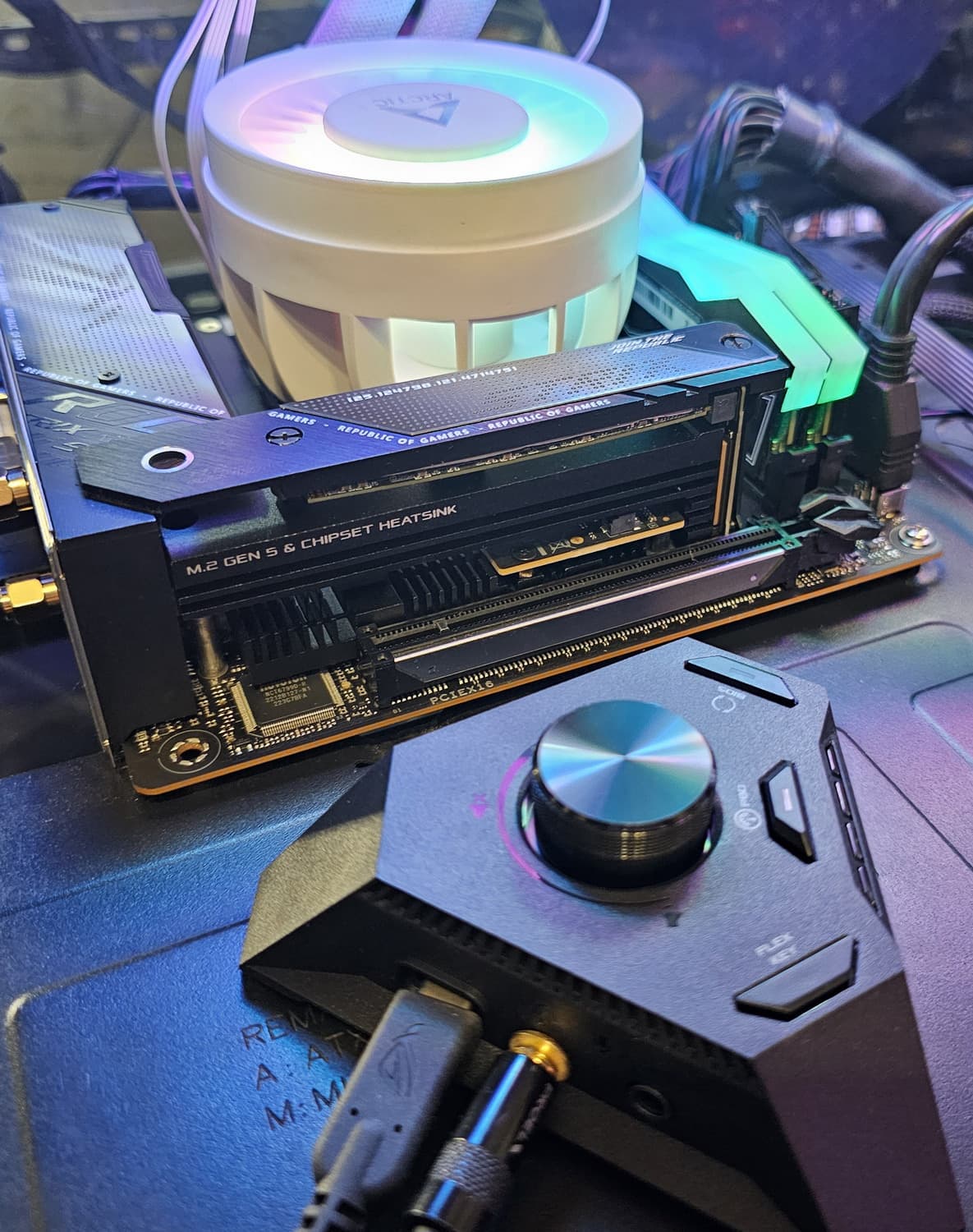 ROG Strix Hive имеет магниты в основании, поэтому его можно легко установить на любой металлической поверхности, например, на боковой стороне системного блока.