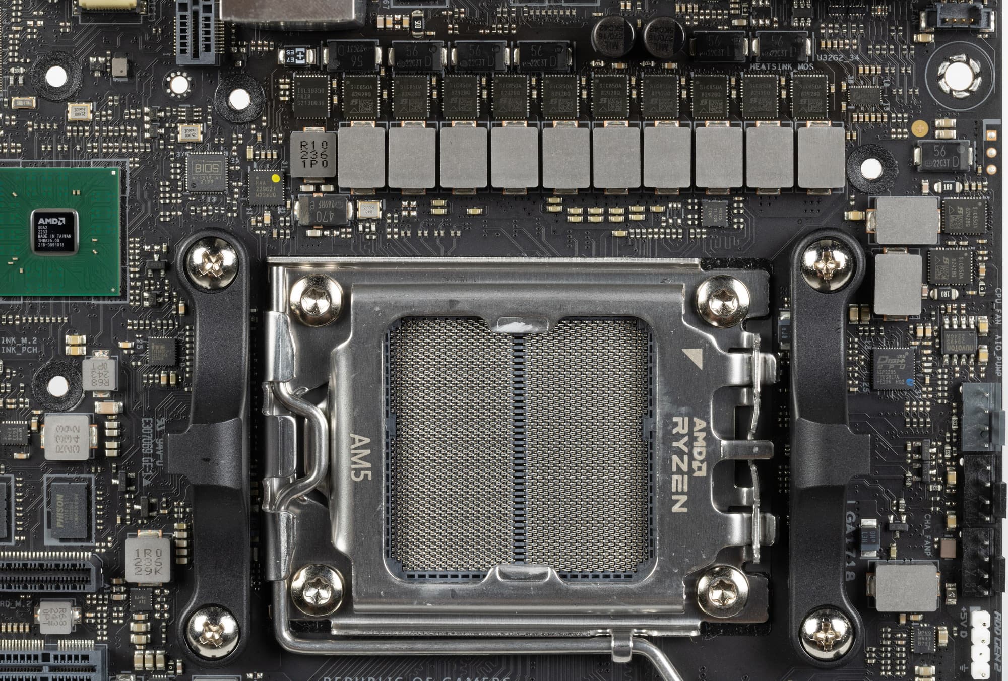 Внешне схема питания выглядит как 10+2+1: 10 фаз — ядро процессора, 2 фазы — SoC (I/O-чиплет Ryzen), 1 фаза — VDD_MISC (вывод встроенной графики).