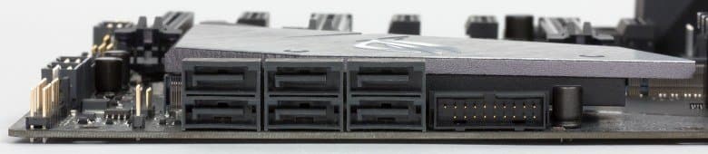 Для подключения накопителей или оптических приводов на плате предусмотрено шесть портов SATA 6 Гбит/с, которые реализованы на базе интегрированного в чипсет Intel Z370 контроллера. Эти порты поддерживают возможность создания RAID-массивов уровней 0, 1, 5, 10.