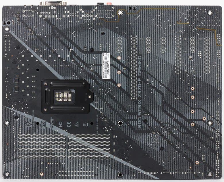 Плата Asus ROG Strix Z370-F Gaming выполнена в форм-факторе ATX (305×244 мм). Для ее монтажа в корпус предусмотрены стандартные девять отверстий.