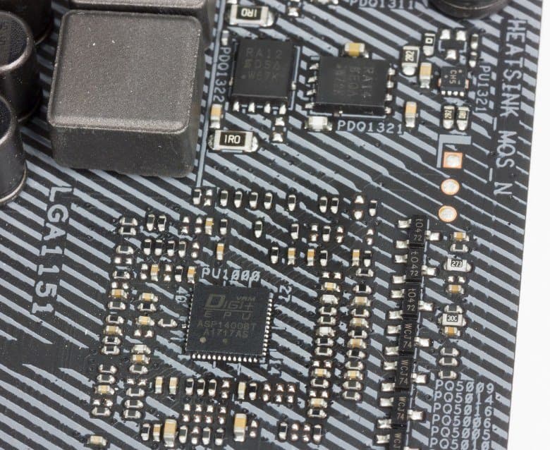 Регулятор напряжения питания процессора на плате 10-канальный и управляется PWM-контроллером ASP1400BT. Суда по нагреву радиаторов, шесть каналов питания отводится для ядер процессора.