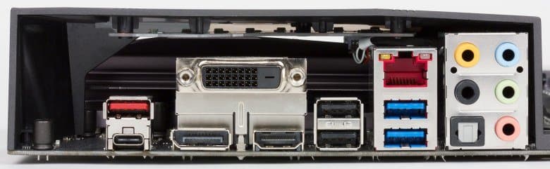 | Разъемы на задней панели | 2 × USB 3.0 (Type-A) 1 × USB 3.1 (Type-C) 1 × USB 3.1 (Type-A) 2 × USB 2.0 1 × DisplayPort 1 × HDMI 1 × DVI 1 × RJ-45 1 × S/PDIF (оптический, выход) 5 аудиоразъемов типа миниджек (3,5 мм) |