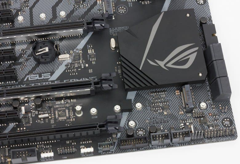 С учетом указанных разделений на плате Asus ROG Strix Z370-F Gaming задействованы 29 высокоскоростных портов чипсета: 17 портов PCIe 3.0, 4 порта SATA и 6 портов USB 3.0. Еще два чипсетных HSIO-порта могут конфигурироваться либо как два порта SATA, либо как два порта PCIe 3.0.
