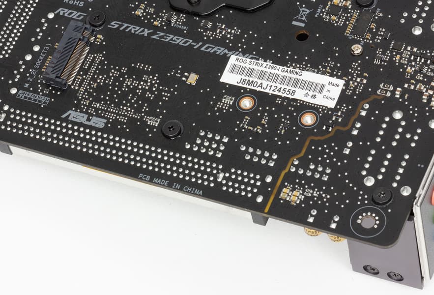 Фокус тут в том, что разъемы M.2 на плате Asus ROG Strix Z390-I Gaming нетипичные. То есть каждый разъем в отдельности вопросов не вызывает, но вот тот факт, что оба разъема M.2 поддерживают оба режима PCIe 3.0 x4 и SATA — это уже не типичная ситуация. Обычно только один разъем поддерживает режимы SATA и PCIe 3.0 x4, а второй — только режим PCIe 3.0 x4.