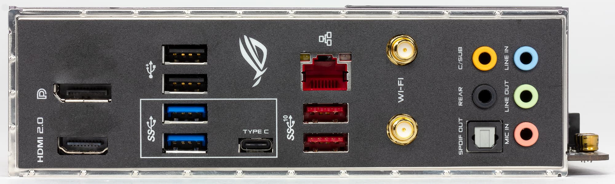 | Разъемы на задней панели | 1 × HDMI 2.0 1 × DisplayPort 1.2 2 × USB 3.1 (Type-A) 1 × USB 3.0 (Type-C) 2 × USB 3.0 (Type-A) 2 × USB 2.0 1 × RJ-45 1 × S/PDIF (оптический, выход) 5 аудиоразъемов типа миниджек 2 разъема для подключения антенны |