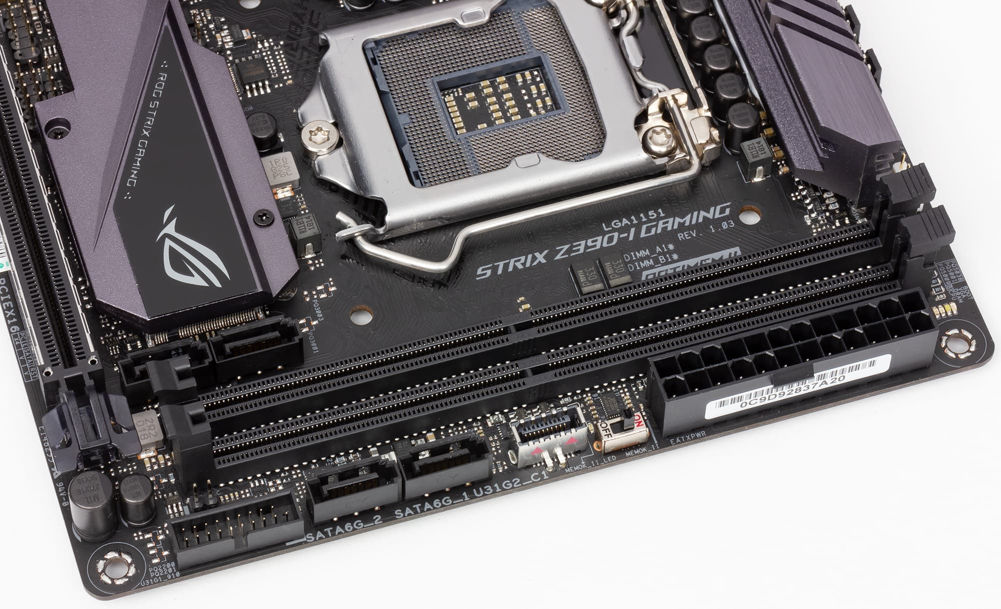 Плата Asus ROG Strix Z390-I Gaming основана на чипсете Intel Z390 и поддерживает процессоры Intel Core 8-го поколения и новые процессоры Intel Core 9-го поколения с разъемом LGA1151.