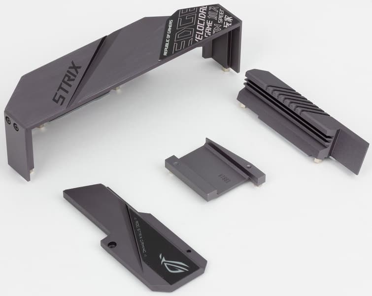 Система охлаждения платы Asus ROG Strix Z390-I Gaming состоит из нескольких радиаторов. Два радиатора расположены по двум смежным сторонам процессорного разъема и предназначены для отвода тепла от элементов регулятора напряжения питания процессора, один из этих радиаторов совмещен с кожухом задней панели разъемов. Еще один радиатор предназначен для охлаждения чипсета.