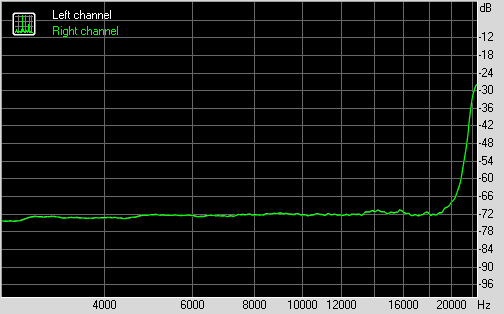 Для тестирования выходного звукового тракта, предназначенного для подключения наушников или внешней акустики, мы использовали внешнюю звуковую карту Creative E-MU 0204 USB в сочетании с утилитой RightMark Audio Analyzer 6.3.0. Тестирование проводилось для режима стерео, 24-бит/44,1 кГц. По результатам тестирования аудиотракт на плате Asus ROG Strix Z390-I Gaming получил оценку «Хорошо».